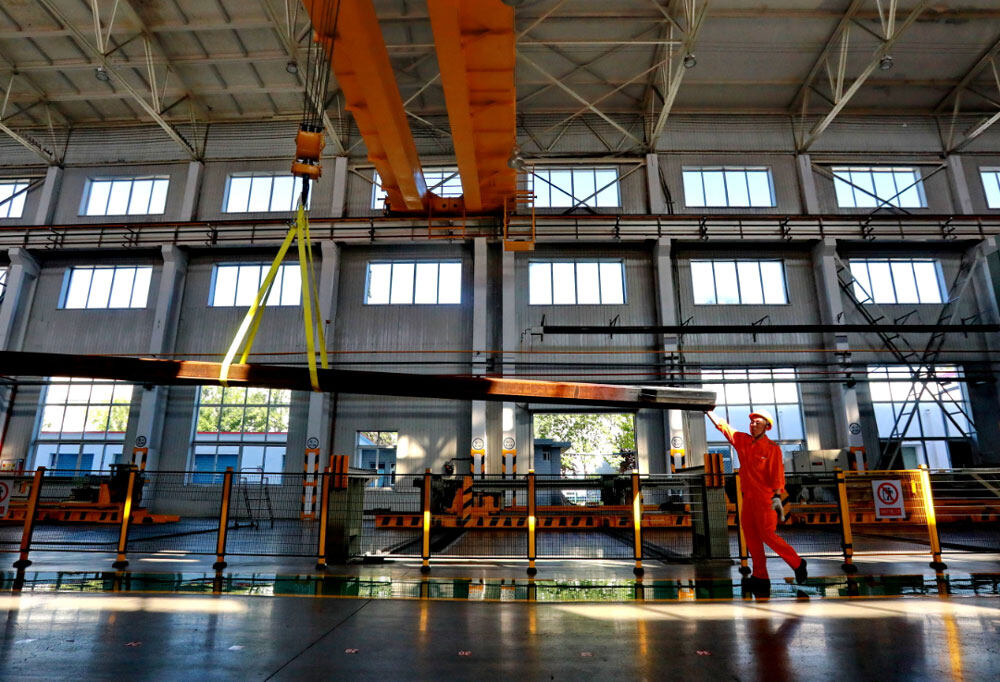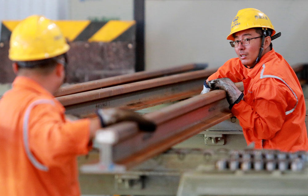 起重工正在转运钢轨