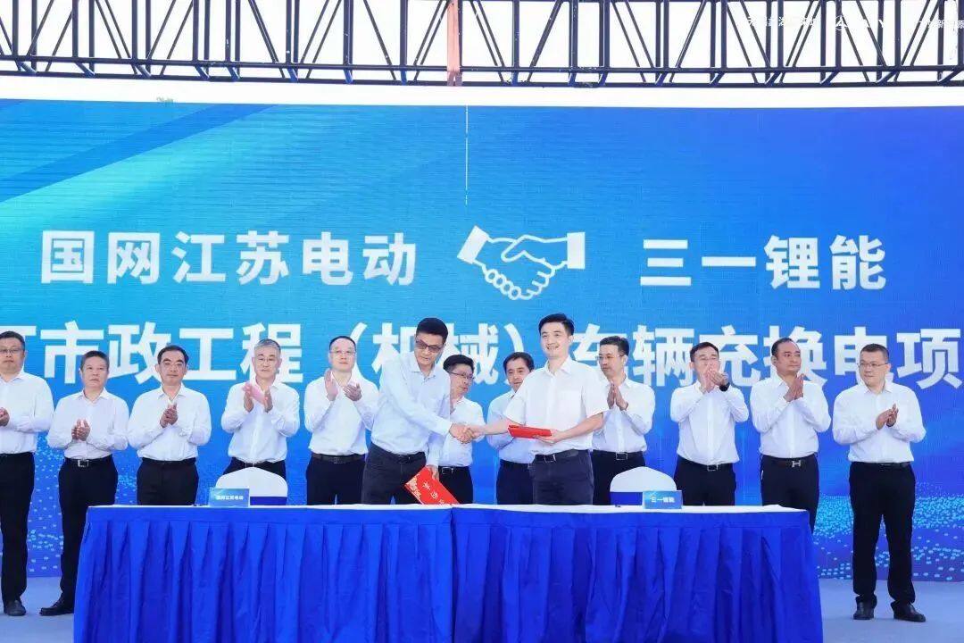 At the event site, Sany Lithium Energy Co., Ltd. signed a project cooperation agreement with State Grid Jiangsu Electric Vehicle Service Company. Taking the opportunity of Jiangsu's first Sany electric changing station being settled in Wuxi, this project radiates the whole province, promotes the implementation of the electric changing mode of municipal engineering (machinery) vehicles, and drives the development of comprehensive municipal engineering machinery and vehicle charging and changing stations in Wuxi and even the whole country.