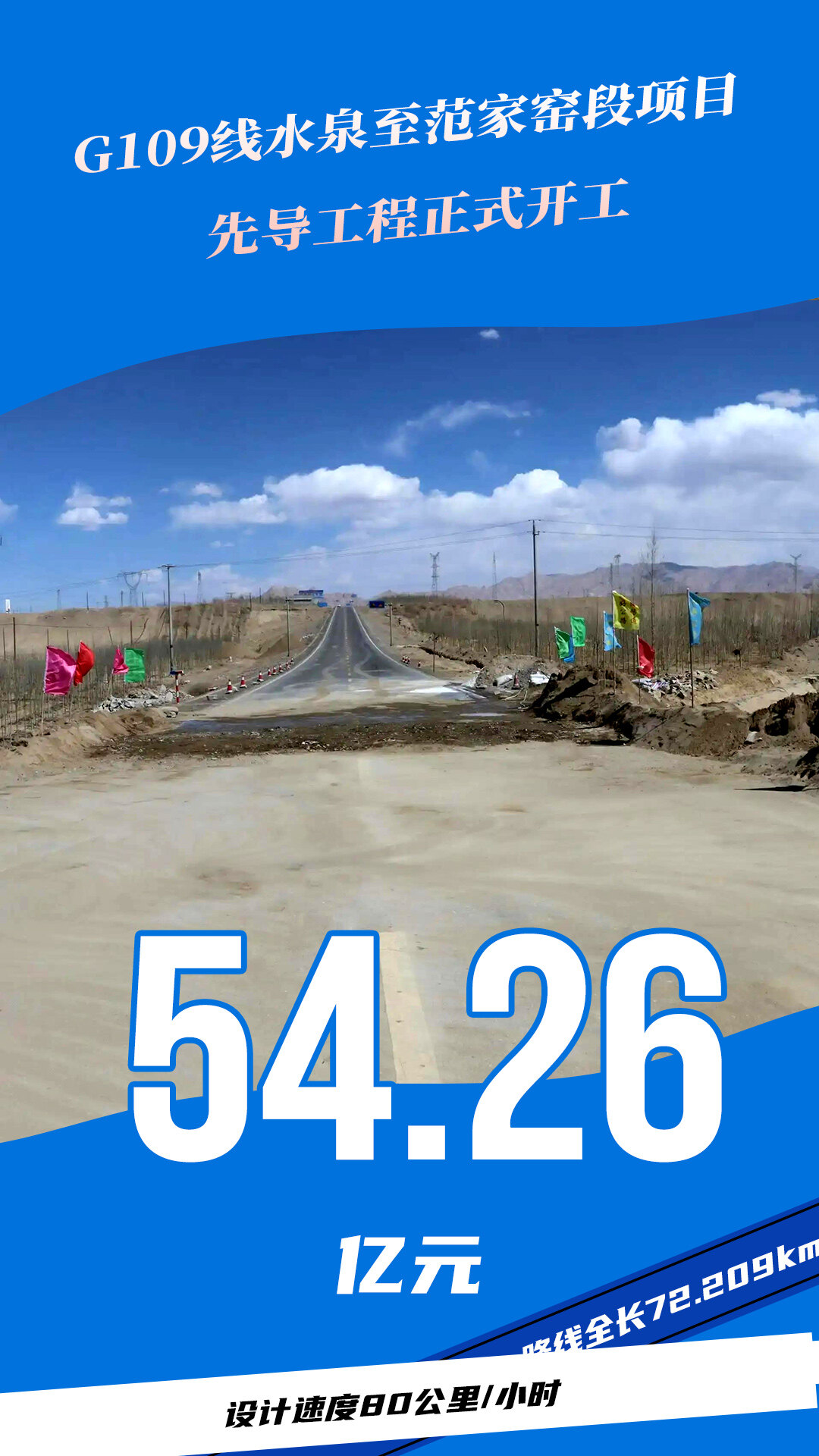 据介绍,G109线甘肃水泉至范家窑段建设项目是纳入国家政策性开发性金融工具(基金)支持的项目之一。项目起点位于G6京藏高速公路王家山收费站连接线与G109线平交口处,终点与已建成的G341线范家窑互通顺接,路线全长72.209km。主线采用双向四车道一级公路设计标准,设计速度80公里/小时,全线设置桥梁5025米/39座,隧道920米/1座,互通立交3处(王家山、杨家台、吴家川),服务区1处,主线收费站2处(含收费广场),改造现有养管站2处,总投资为54.26亿元。该项目建成后能够更好地发挥G109线、G6京藏高速公路之间集散公路及干线公路的功能。