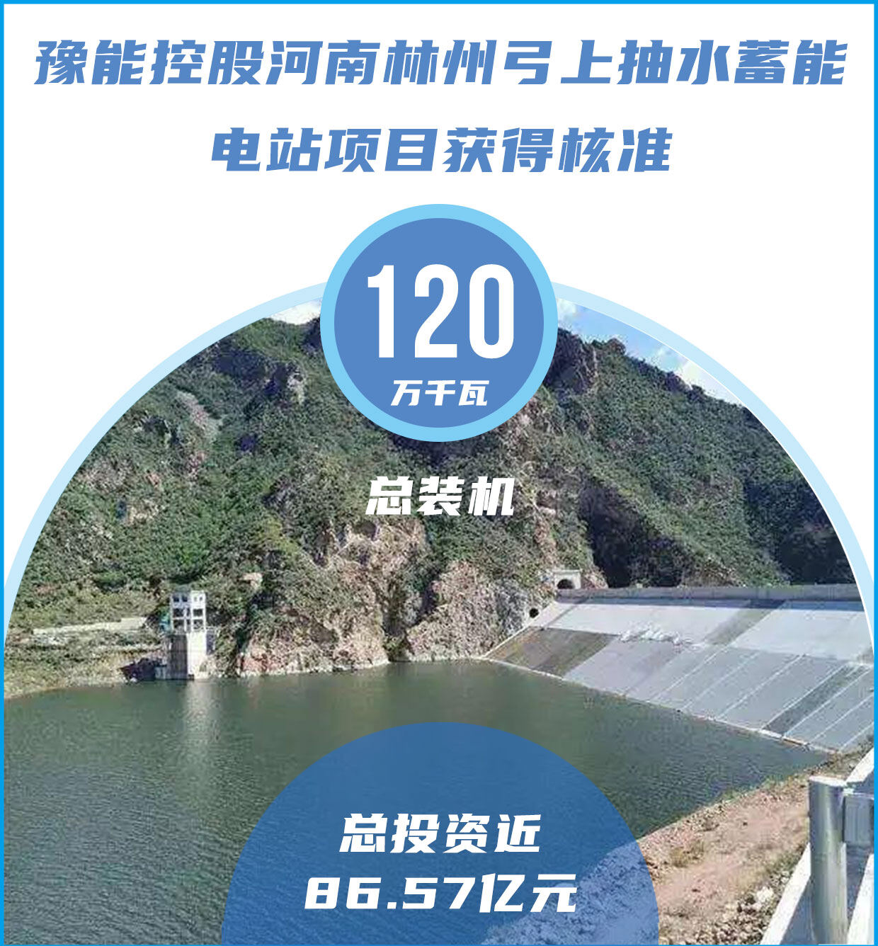 据悉,该项目位于安阳市林州市合涧镇境内,项目总投资86.57亿元。电站总装机容量120万千瓦,安装4台30万千瓦可逆式水泵水轮发电机组。电站主要由上水库、下水库、输水系统、发电厂房系统及开关站等建筑物组成,电站具有日调节能力。电站以500千伏等级电压接入河南电网。