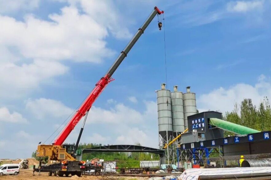 考虑到施工早期要把钢筋笼从加工车间运送到桥梁搭建点,可能需要起重设备频繁移动,所以施工方在用车前对几个不同厂家的起重产品进行了详细对比,主要考察转场挪车和运营成本。最终,选用了三一STC250E5-1插电起重机。