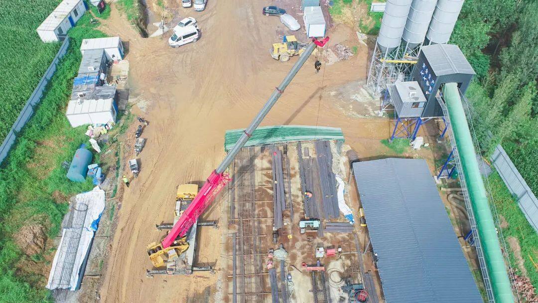为了解决跨水交通的问题,2022年6月份,汀水河桥正式动工,架设连接两个村庄的桥梁并延续桥梁铺设道路,便于运输工具或行人在两岸顺利通行。为了提升施工效率,离建设现场不足100米的空旷区域搭建了钢筋加工车间,专门用于批量生产钢筋笼。