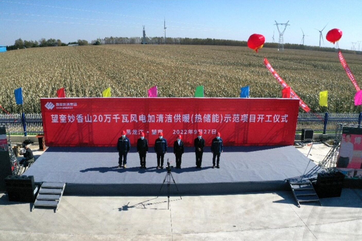 2022年10月3日上午,中能建建筑集团承建的国能科环龙源节能望奎妙香山风电清洁供暖示范项目举行开工典礼,拉开了工程大干快上的序幕。