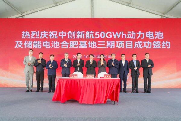 中创新航科技有限公司是专业从事锂离子电池、电池管理系统及相关集成产品和锂电池材料的研发、生产、销售与市场应用开发的高科技企业,也是国内能够配套三家以上主流乘用车厂商的两家电池企业之一。中创新航合肥项目计划总投资248亿元,用地约1250亩,建成达产后将形成年产锂离子动力电池及储能系统50GWh产能。目前一期项目已于10月8日投产,二期项目计划于今年年底投产。当天签约的三期项目,规划10GWh年产能,计划总投资35亿元。