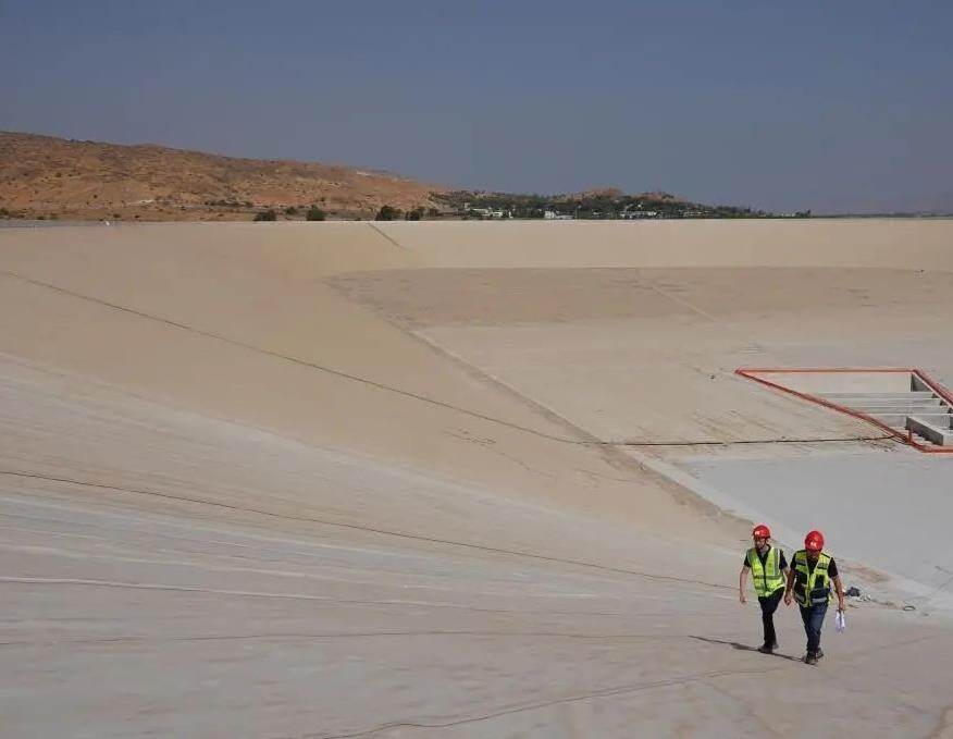 站在崭新的下水库旁,敖国辉和同事们心中充满自豪。一片荒地变成库容316万立方米的水库,凝聚了太多人的心血。据他介绍,项目位于东非大裂谷北延伸段末端,海平面以下,特殊的地理位置让施工充满挑战。“由于地势低、地下水位高,开挖过程中渗水考验严峻;水库位置地质板块活跃,对抗震烈度设计要求高;以色列淡水资源严重匮乏,相关部门对整体库盆渗漏要求极为苛刻”三年前初到项目时面临的诸多难题,敖国辉记忆犹新。