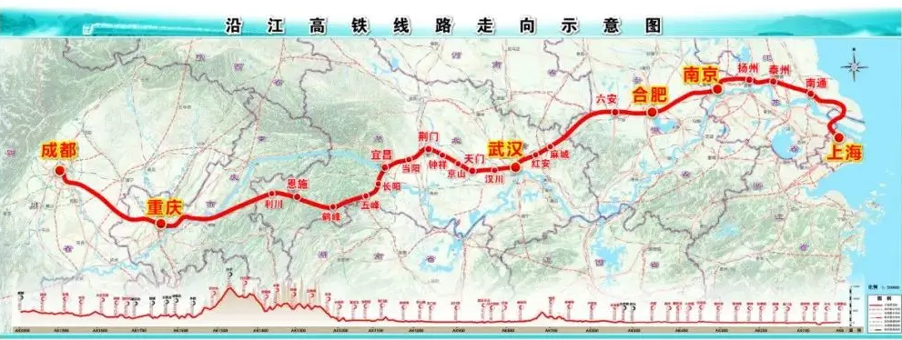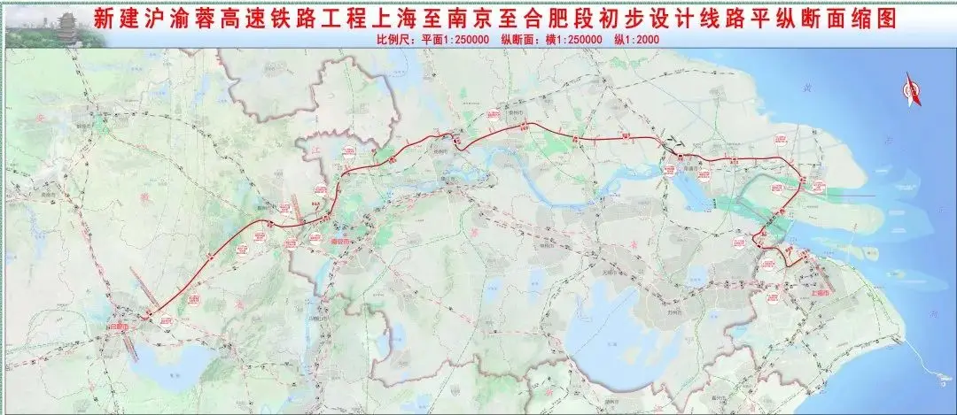 新建上海至南京至合肥高速铁路位于我国华东地区的上海市、江苏省和安徽省境内,大致沿长江北岸东西走向。线路起自上海市新建上海宝山站,向西经江苏省苏州市、南通市、泰州市、扬州市、南京市,安徽省滁州市,终至合肥市合肥南站。