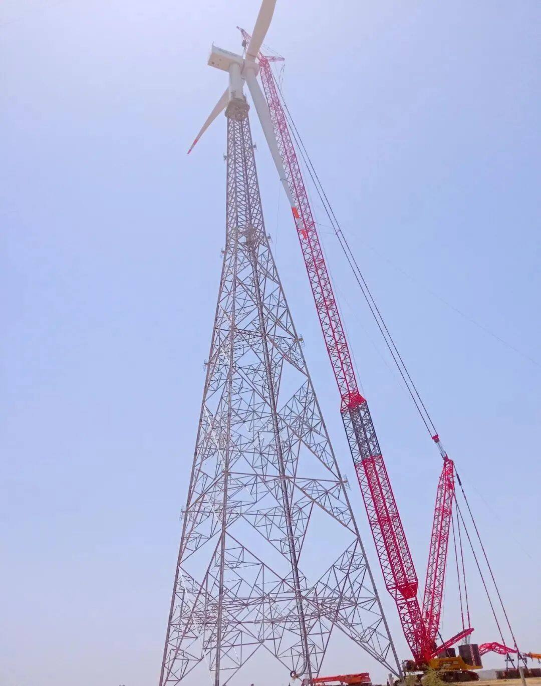 Sany 750-ton crawler crane SCC7500A has successfully installed the first 160-meter wind turbine in Gujarat, India.