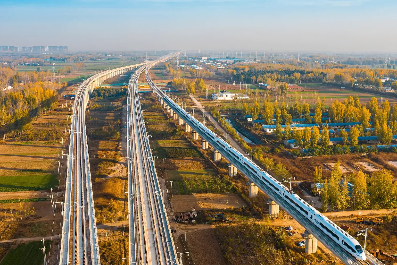 HSZQ-9 standard: the main line DK211+585 ~ DK241+050 station and related works in Huning section, the length of the main line is 29.46 km, including 29.46 km of Tongtaiyang Bridge. A 9# beam field is set up to make, transport and frame 857 hole box girders in the bid section. Ballastless track construction.