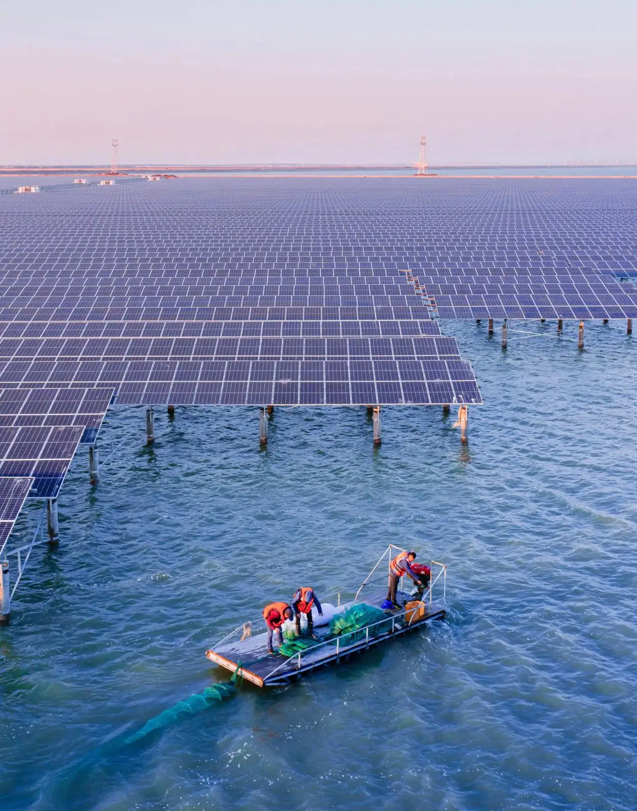 海上光伏将“光伏发电站”从陆地搬到了海上,因海上水面开阔没有遮挡物,日照较长且利用充分(水面反射光),具有可显著提升发电量、土地占用少、易与其它产业相结合等特点。