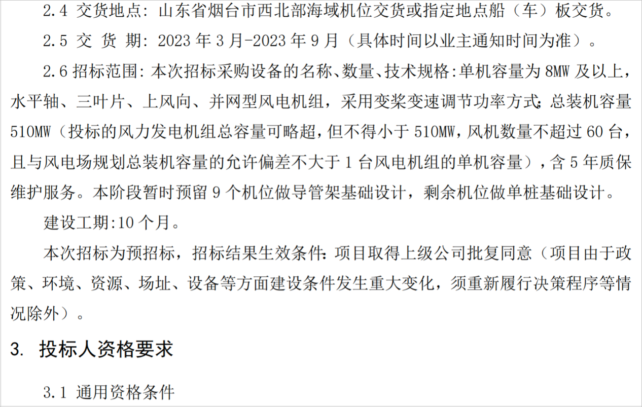 近期3个风电项目开启风电机组招标,总容量910MW。其中包括河北300MW风电项目、山东510MW海上风电项目韩国100MW风电项目。具体情况如下: