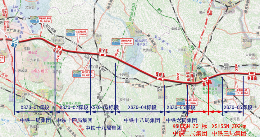 其中雄安枢纽、衡水枢纽为中国铁路北京局集团有限公司代建范围,梁山至郓城段为中国铁路济南局集团有限公司代建范围。