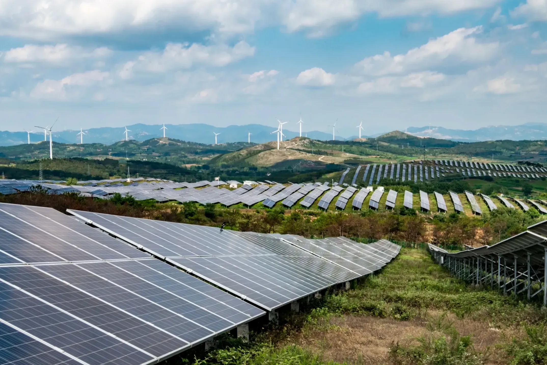 内蒙古风能、太阳能资源丰富,位居全国前列。全国单体规模最大的光伏治沙基地——蒙西库布其200万千瓦光伏治沙项目施工现场,正在架设柔性支架,为安装光伏组件做准备。光伏发电的同时,工程还将建设外围防风阻沙碳汇林带、防风绿化隔离带,实现治沙功能。关键词:基建、基础设施建设、国内工程新闻、规划投资
