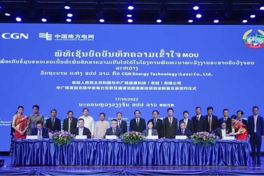 2022年10月17日,在中国驻老挝大使姜再冬、老挝计划投资部部长坎坚、中国广核集团有限公司副总经理李亦伦等的共同见证下,中国广核能源国际控股有限公司与老挝政府在老挝万象签署老挝北部中老电力互联互通清洁能源基地合作谅解备忘录,标志着老挝迄今规模最大的能源投资项目正式启动前期工作,也标志着中广核在一带一路沿线清洁能源布局进一步拓展。