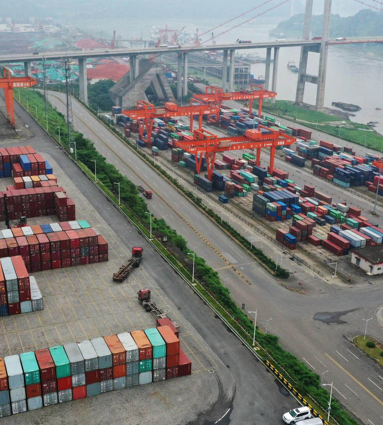 On the morning of September 5, Yuzui, Liangjiang New Area, on the north bank of the Yangtze River, five 5,000-ton freighters docked end to end at a container terminal to load and unload goods. On the dock platform yard, colorful container scale is comb ratio; More than 10 orange yard Bridges "walk" steadily, "walk" between the yard, and accurately grab containers to the designated place. This is Chongqing Guoyuan Port, with an annual throughput of more than 20 million tons.