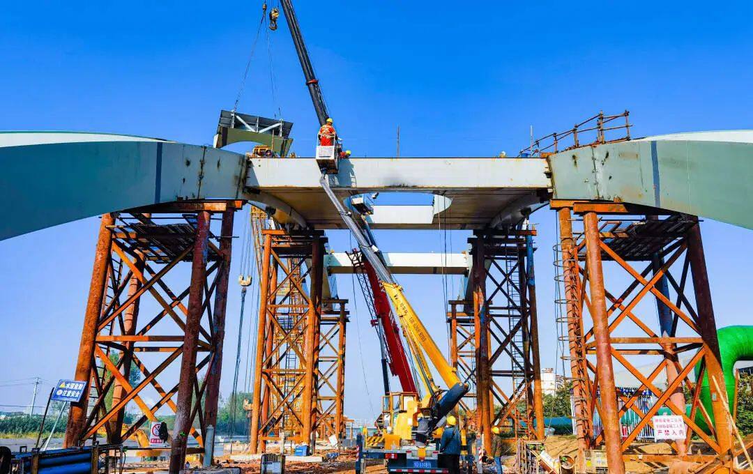 施工中,项目建设者积极探索内河航道钢结构桥梁吊装关键技术研究、大跨度钢箱提篮拱施工线形监控量测技术、空间异形钢结构定位拼接技术等多个工艺工法,形成了一系列专利、论文等科研成果,为以后同类工程施工提供了宝贵的经验。