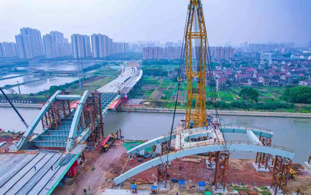 2022年10月17日,中铁二十局一公司承建的芜申线溧阳城区段项目宗村大桥,如期完成钢箱提篮拱大节段拱肋吊装,为后续施工奠定了坚实基础,受到常州市三级航道整治工程建设指挥部办公室(建设单位)、华设设计集团股份有限公司(设计单位)、江苏育通交通工程咨询监理有限责任公司(监理单位)领导的高度赞誉。