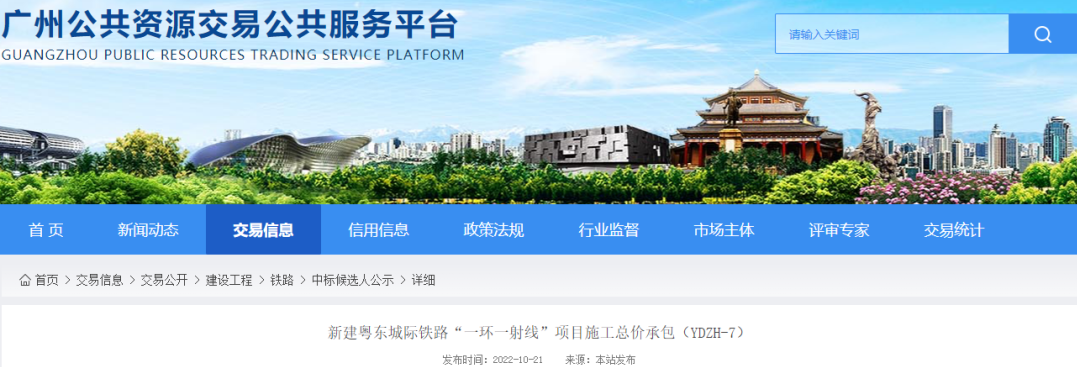 第一中标候选人:中国铁建股份有限公司、中铁十七局集团有限公司、中国铁建电气化局集团有限公司、中铁城建集团有限公司、广东华隧建设集团股份有限公司、中铁十二局集团有限公司、中铁十四局集团有限公司组成的联合体,投标价147.6亿元。