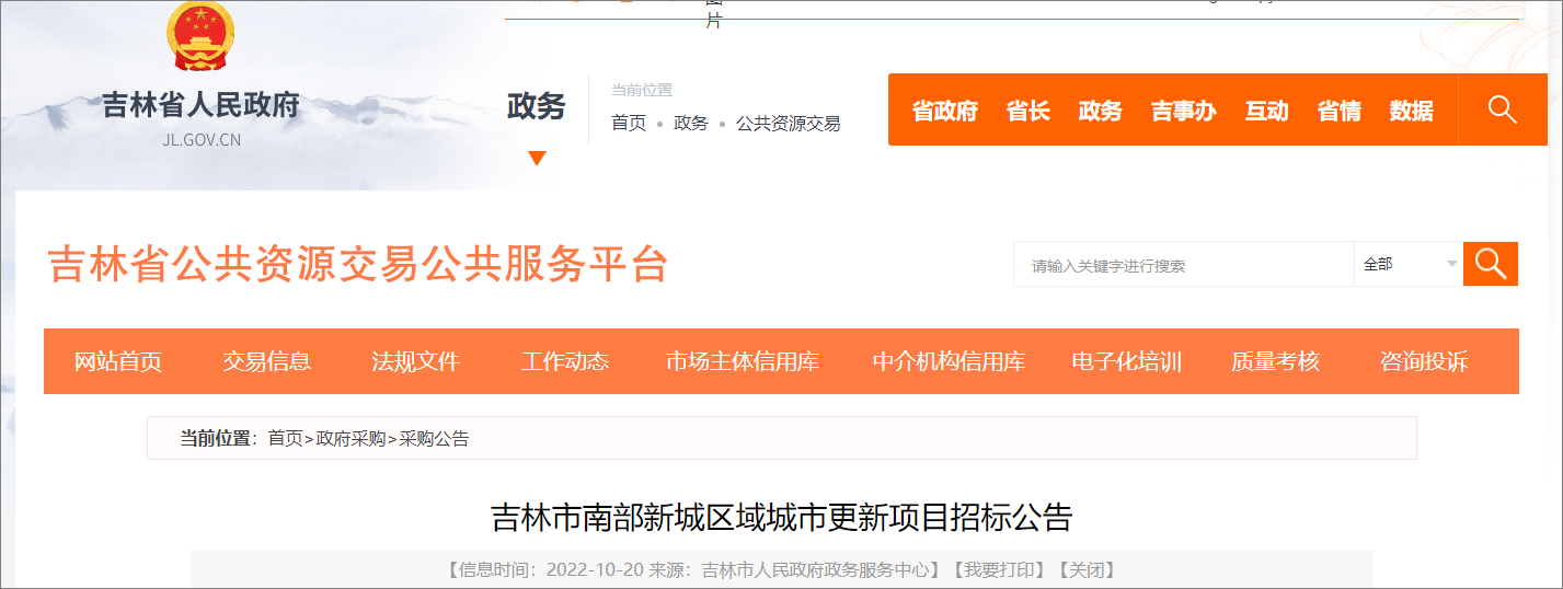 On October 21, 2022, the People's Government of Jilin Province issued the bidding announcement for the urban renewal project in the southern new city area of Jilin City. The project belongs to the industry of housing construction. The tenderee is Jilin Guoyuan Investment Holding Group Co., Ltd. The total investment of the project is 15.36 billion yuan.