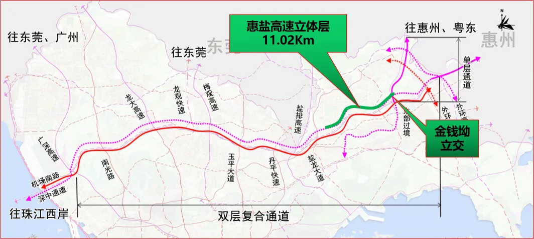 标段1:惠盐高速公路深圳段改扩建工程立体层北桥土建工程施工,包括立体层北侧主线,北侧岔线连接北侧隧道段;金钱坳-龙岗复合式立交FY、LA匝道,深汕西高速北侧衔接拼宽段;碧新路上下层连接立交F、B、I匝道,惠盐高速地面层北侧拼宽段。