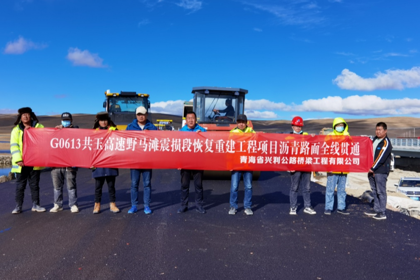 2022年10月24日,随着最后一车沥青混凝土摊铺、碾压完成,玛多地震涉及共玉高速公路野马滩震损段恢复重建工程沥青路面全线贯通,标志着该项目主体工程全部完工。