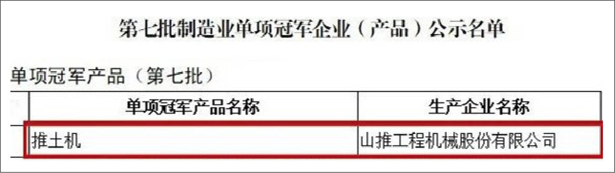 Recently, Shandong Provincial Department of Industry and Information Technology announced the seventh batch of national manufacturing individual champion enterprises (products) list, Sandi construction machinery Co., Ltd. bulldozer products were successfully approved as national manufacturing individual champion products.