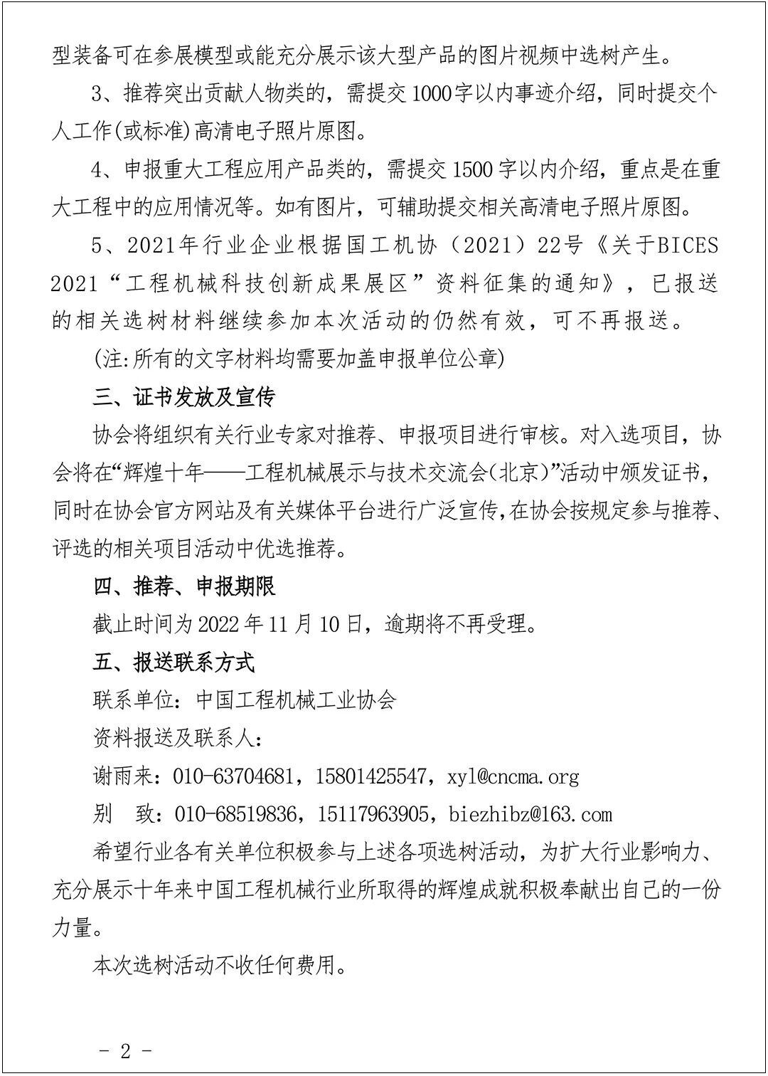 5、2021年行业企业根据国工机协(2021)22号《关于BICES 2021“工程机械科技创新成果展区”资料征集的通知》,已报送的相关选树材料继续参加本次活动的仍然有效,可不再报送。