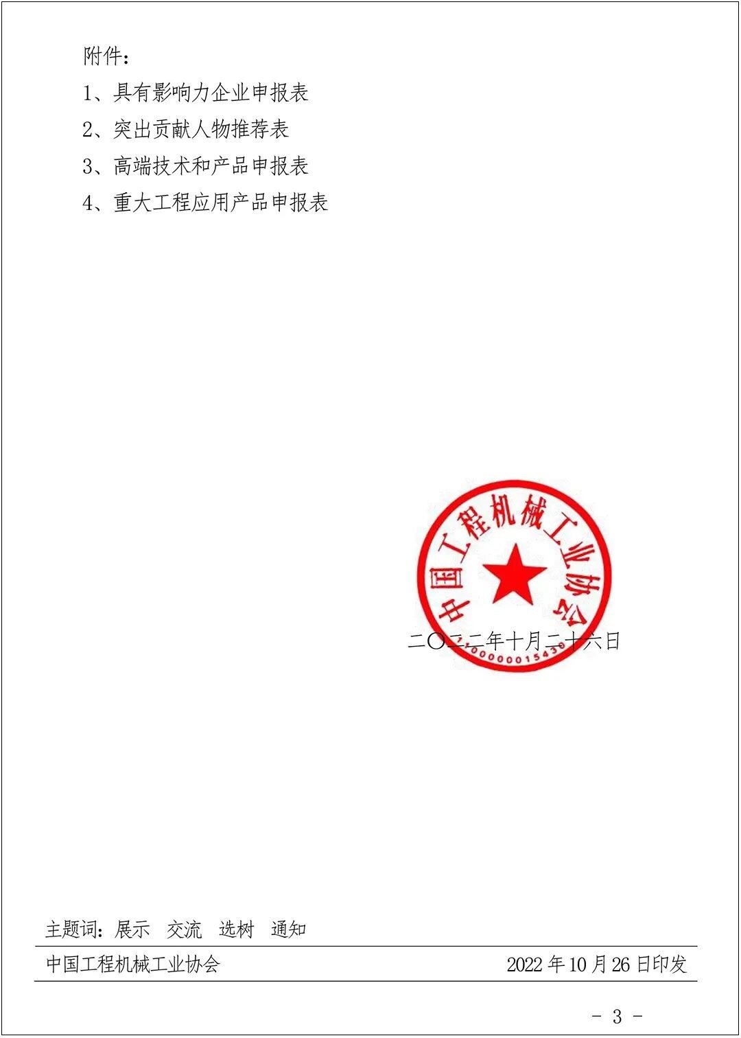 希望行业各有关单位积极参与上述各项选树活动,为扩大行业影响力、充分展示十年来中国工程机械行业所取得的辉煌成就积极奉献出自己的一份力量。