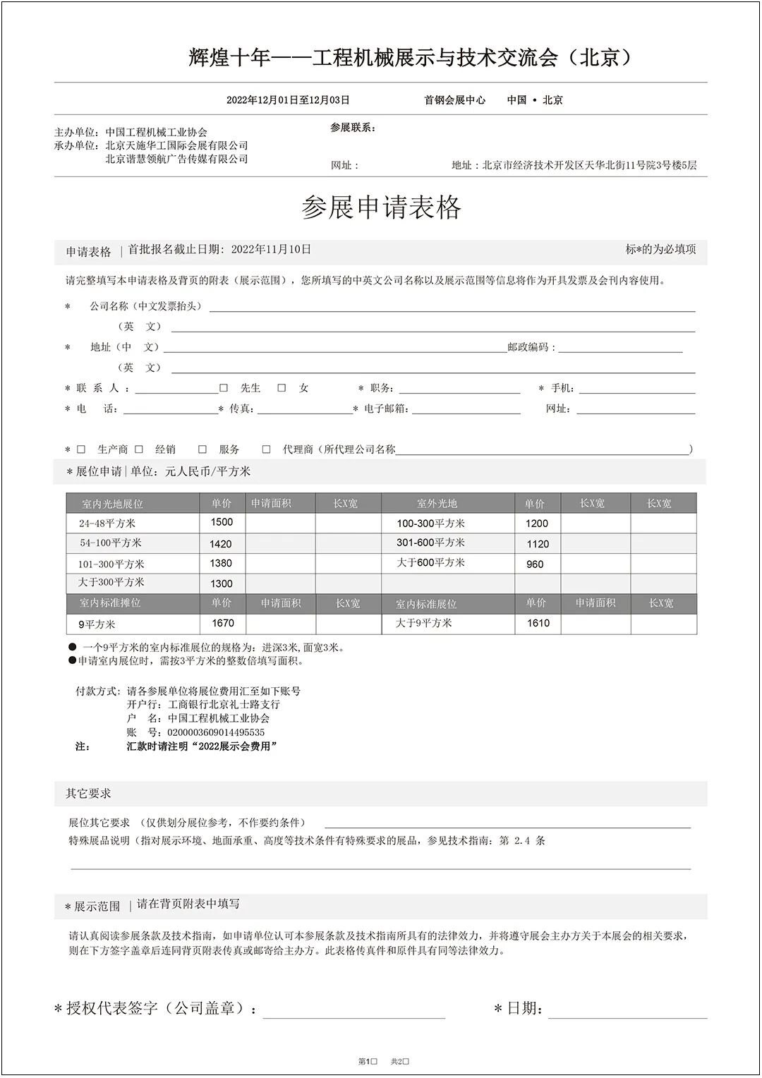 自我协会发布举办“辉煌十年——工程机械展示与技术交流会”(以下简称“展示会”)通知后,各有关企业积极响应,很多单位报名参加或来电咨询具体安排,我们深表感谢!现将有关“展示会”展馆、报名及参展准备的相关情况通知如下: