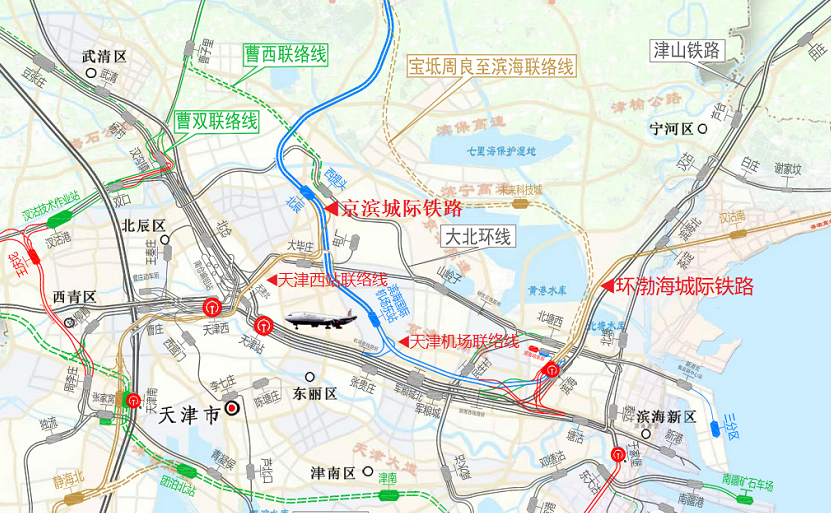 Due to the integrated design and construction of Tianjin Airport Station and Binhai International Airport T3 Terminal, the Beijing Binhai Intercity Railway is constructed and opened in sections due to the impact of the airport phase III reconstruction and expansion project.