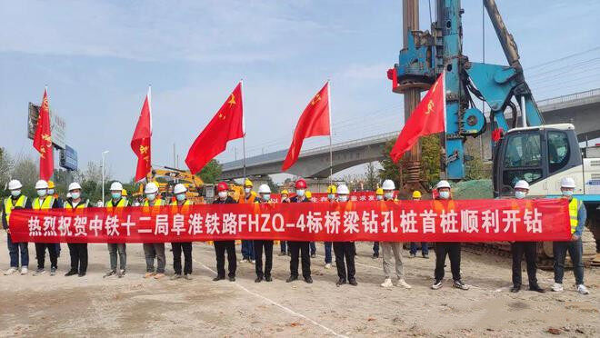 On the morning of Oct 30, 2022, the first pile foundation of the Fuyang section of the Fuyang-Mengcheng-Suzhou (Huaibei) Railway, which was built by the 12th Bureau of China Railway, began drilling, marking the substantive construction stage of the main body of the Fuyang-Huaibei high-speed railway.
