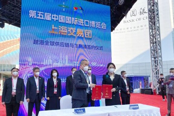 2022年11月5日上午,第五届中国国际进口博览会开幕首日,青浦区便捷报频传——越海全球供应链“跨山越海”,与参展商飞利浦(中国)投资有限公司“强强联手”,达成3亿美元采购意向订单,摘得上海交易团“首单”!