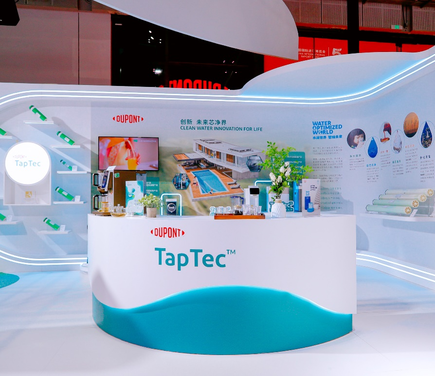 本届进博会上展出了全新一代大型商用杜邦TM FilmTecTM Prime RO反渗透膜产品系列,可广泛应用于饮用水站、餐厅、学校、酒店、医疗实验室以及各商业机构和轻工业净水的各类场景。