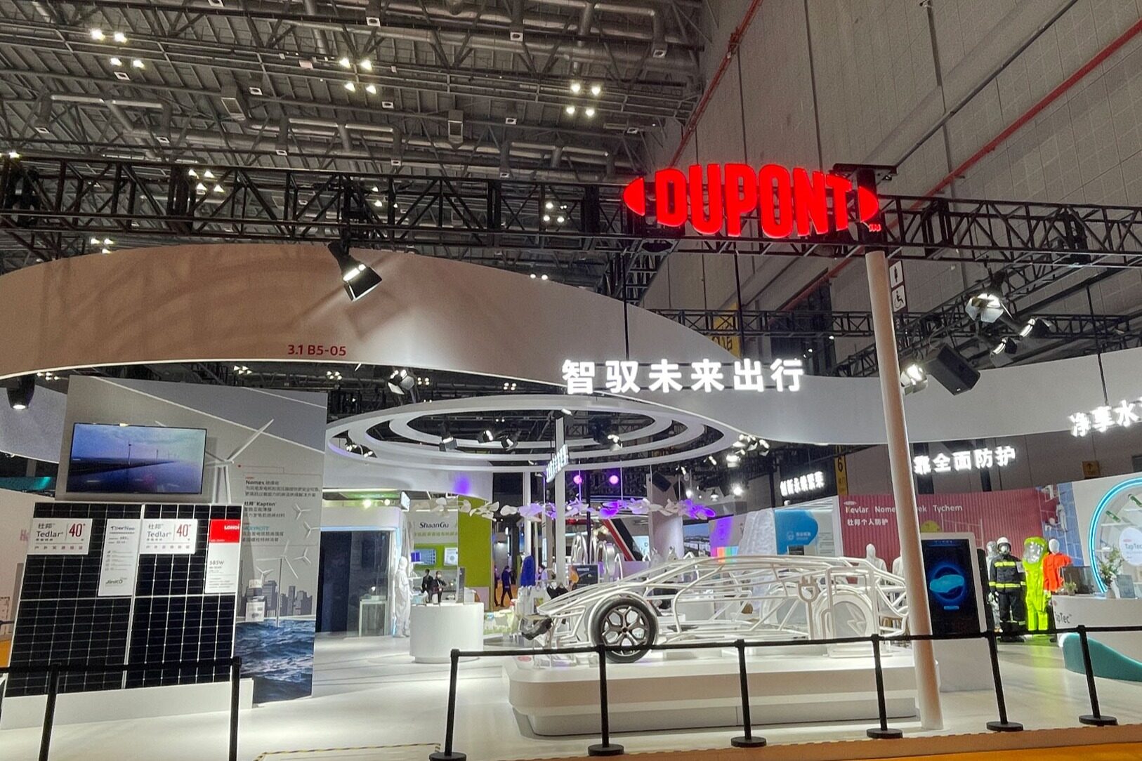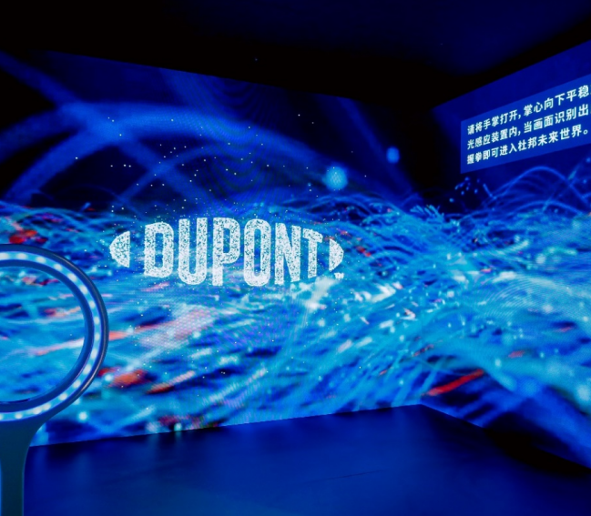 杜邦展台位于技术装备展区(3B5-05),2022年基于业务关键领域共设立七大主题板块:智慧互连宇宙,净享水润天地,可靠全面防护,工业技术丰富世界,智驭未来出行,赋能健康生活,以及创新永续繁荣。通过虚实结合、声影互动、场景构建等方式,生动展现了尖端材料科技在助力解决全球挑战、成就更智慧美好生活中的革新作用。