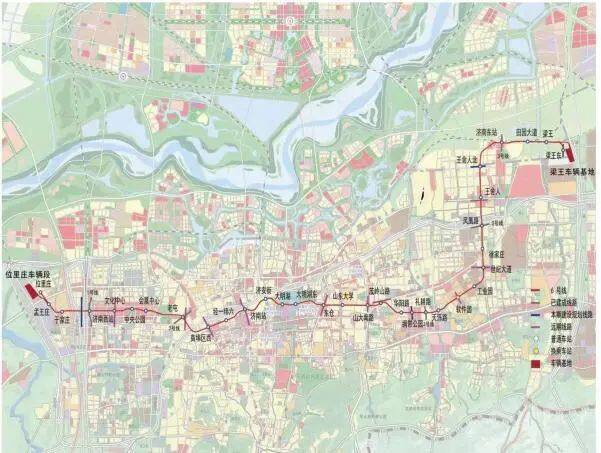 Jinan Rail Transit Line 6 starts from Weilizhuang Station, passes through Huaiyin District, Shizhong District, Tianqiao District, Lixia District and Licheng District, and ends at Liangwang East Station, roughly in an east-west direction. The total length of the line is 39.1km, with 33 stations, all of which are underground lines.