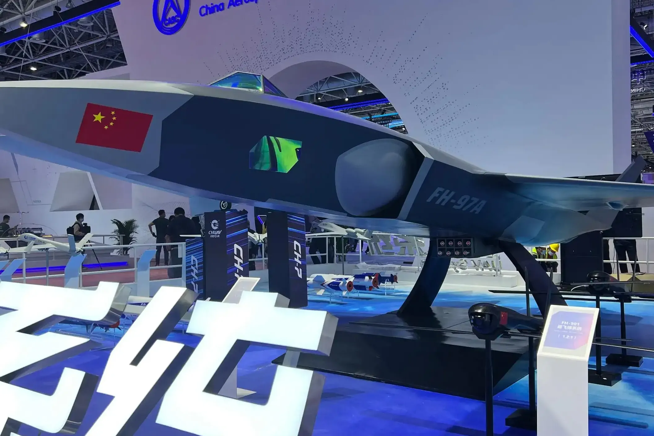 作为无人系统产业链链长单位,航天九院携多个无人系统产业家族成员亮相展会。包括以FH-97A忠诚僚机和FH-988远程固定翼无人运输机为代表的多款无人机及多种吊舱、“飞腾系列”智能精导武器、FF系列航空发动机,涉及防务、航天技术应用两大展区。记者了解到,此次由航天九院飞鸿公司研制的FH-97A“忠诚僚机”也是首次展出。