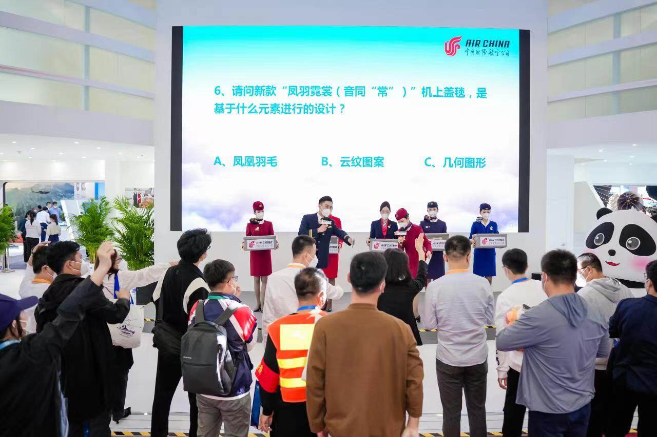 在展会现场,观众可通过电子展示屏、新机载娱乐系统模拟装置及实物展陈,深入了解国航即将推出的新产品。伴随即将交付的新A350飞机,国航全新公务舱座椅和机载娱乐系统即将与公众见面,全新公务舱座椅拥有10余项国航专属设计,在空间感、功能性、舒适度等方面均有提升,全新机载娱乐系统界面参考旅客日常操作手机的行为习惯,打造“更温馨、更便捷”的体验。2022年12月,国航“凤舞云端”系列客舱视觉内饰产品将焕新推出,其瑞凤图案辅以郎窑红、长城灰、霁蓝等传统色彩运用,形成独具东方美感的视觉体验。此外,展会现场国航还展示了千里江山版《安全须知》的花絮视频,让观众先睹为快。该视频采用三维动画加实拍的手法,在强化机上安全重要性的基础上,呈现浓郁的中国风,展示了一幅美丽中国的精致画卷。据悉,该版安全须知将于12月陆续在国航各机型登陆。