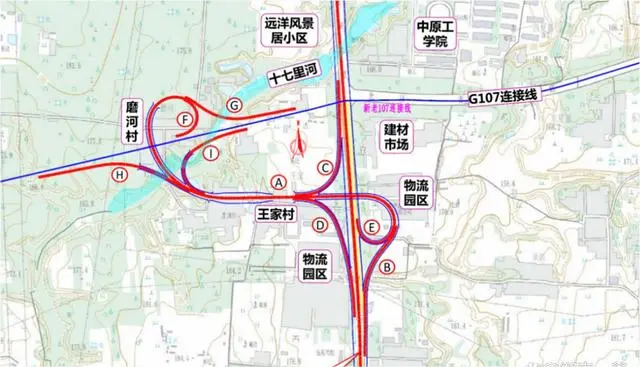 互通式立交。主线设置互通式立交12处,其中枢纽型互通4处,服务型互通8处,十八里河枢纽互通采用双喇叭+T形复合式,新村、西赵、灵井枢纽互通采用对角象限双环变形苜蓿叶形,南龙湖、郭店、新郑南、和尚桥、桂村互通采用双喇叭形式,郑州南部新城互通采用部分菱形形式,清潩河互通采用部分苜蓿叶形式,黄帝故里互通采用单喇叭形式。下阶段应进一步优化互通式立交平纵面线形,优化匝道分汇流段的线形过渡,加强平交口渠化设计,提高服务水平,保证运行安全。分离式立交、通道和天桥。主线设置分离式立交1处、通道58道、天桥4座。下阶段应进一步优化通道、天桥设计,充分考虑净空、排水及采光等要求,保证沿线居民生产生活需要。