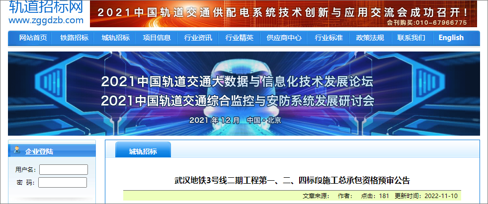 2022年11月10日,轨道招标网发布了武汉地铁3号线二期工程第一、二、四标段施工总承包资格预审公告,该项目所属行业轨道交通,招标人武汉地铁集团有限公司,项目总投资约30亿元。