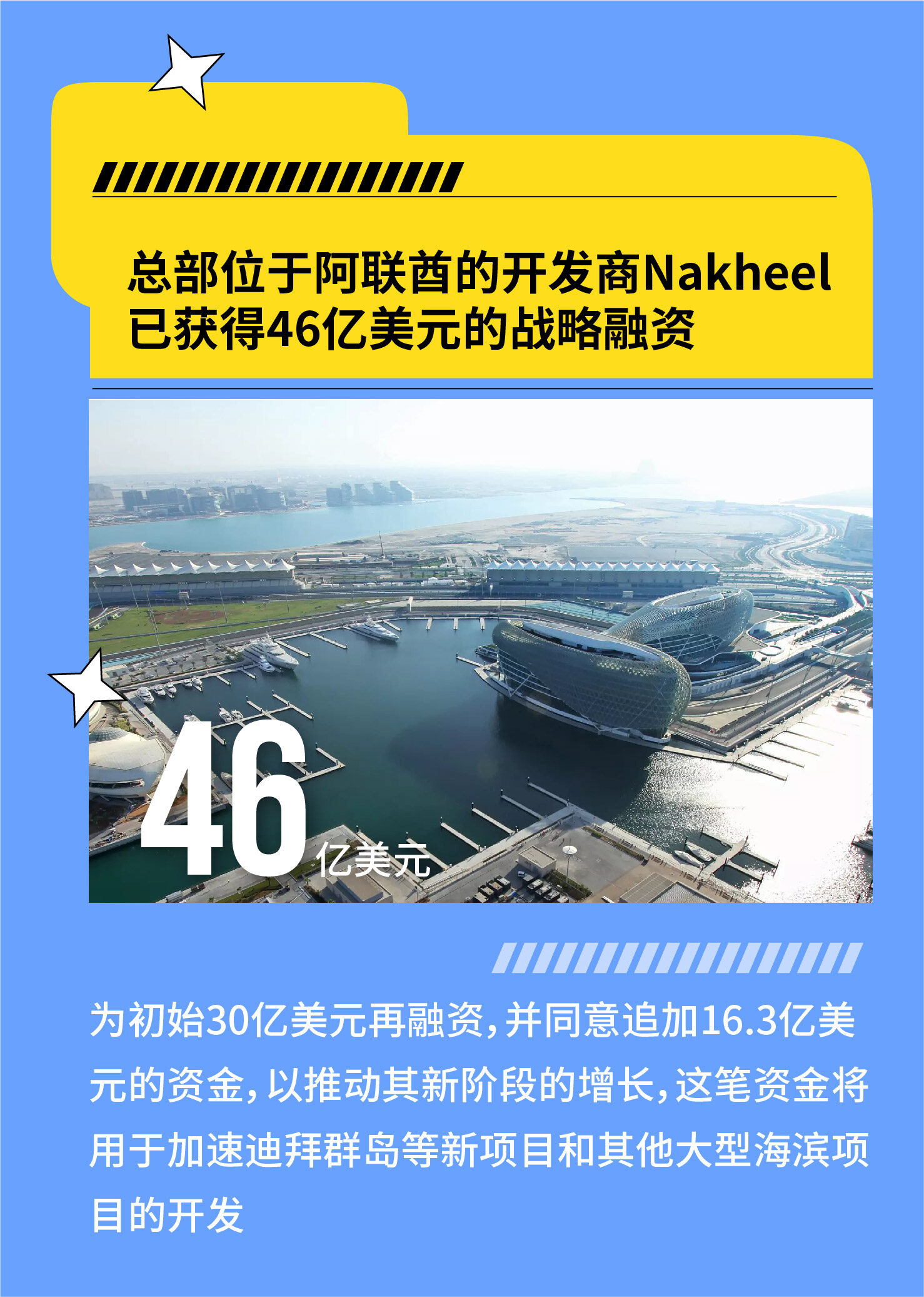 总部位于阿联酋的开发商Nakheel已获得46亿美元的战略融资,为初始30亿美元再融资,并同意追加16.3亿美元的资金,以推动其新阶段的增长。据Nakheel发言人称,这笔资金将用于加速迪拜群岛等新项目和其他大型海滨项目的开发。