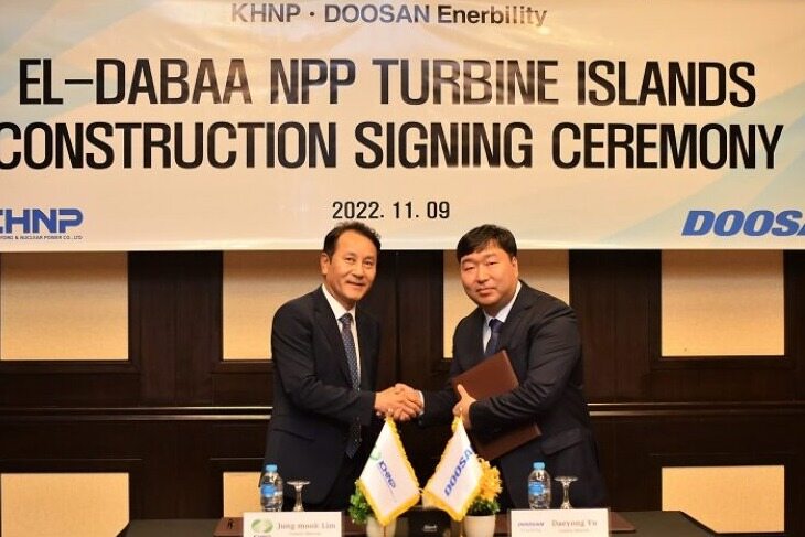 斗山能源已从韩国水电和核电12.1亿美元的合同,用于在埃及4.8GW的El Dabaa核电站建造涡轮机岛。El Dabaa项目标志着其第一份海外核电站建设合同。斗山能源还将负责提供主要设备,包括反应器和蒸汽发生器。