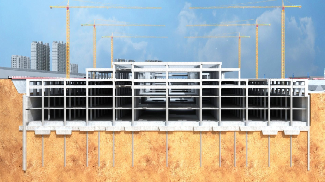北京城市副中心站综合交通枢纽属于超大、超深、超宽地下工程,施工技术复杂、工程风险高,面对地铁、道路、重要管线密布的施工环境,项目团队打破常规,采用盖挖逆作法施工桩基及顶板施工后再向下逐层开挖,有效加快施工进度,提升整体安全性,副中心站作为一座全地下高铁站房,地下一层是进站层,地下二层是候车厅,所有铁路站台都在地下三层,本次完成的底板封闭是将站房最底部结构封住,使32.9米的深基坑完全处于安全稳定状态,相当于常规高铁站的主体结构封顶,后续将进行站台及风道施工。