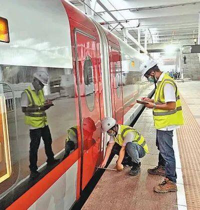 The pantograph rises slowly, accompanied by the current sound of the catenary, the comprehensive detection train of Jakarta-Bandung high-speed Railway is lit up instantly, and the headlights are shining dazzling. Workers at the site and nearby villagers pulled out their mobile phones to take photos with the train. The Jakarta-Bandung High Speed Rail (HSR) recently carried out a hot slip test on the overhead contact line (OCS) at De Karur station, the terminus of the railway, marking the first time that the Jakarta-Bandung comprehensive detection train made its debut on the HSR line.