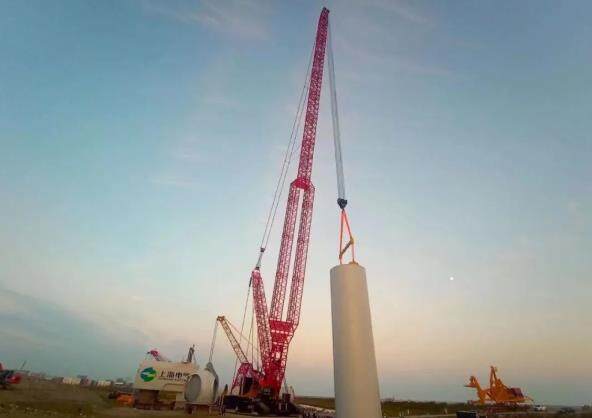 On November 11, 2022, at the site of the upgrading and reconstruction project of units of equal capacity in Shanghai Lingang New City Wind Farm, one 8MW wind turbine generator unit was successfully installed, and Sany SCC19800TM was responsible for the main hoisting task.