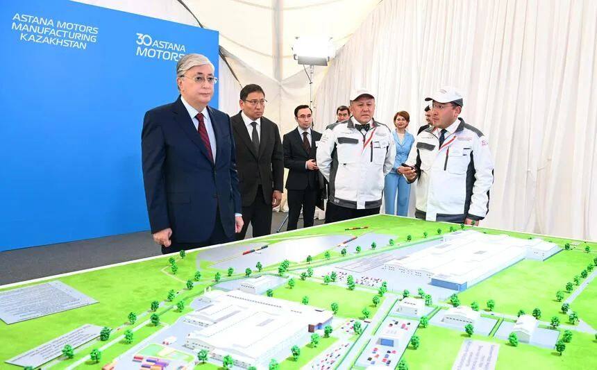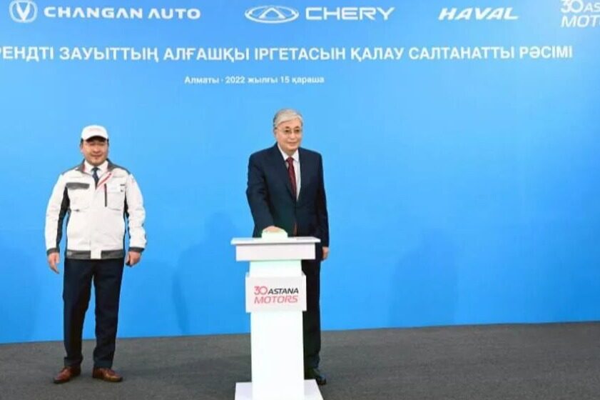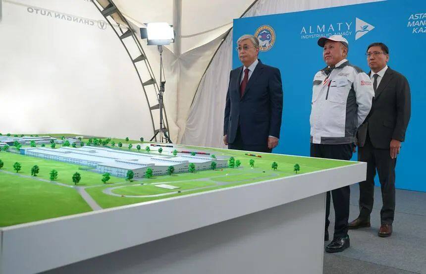 正在对阿拉木图市进行工作视察的托卡耶夫总统,2022年11月15日下午出席了长安、奇瑞和哈弗等汽车品牌制造厂奠基仪式。