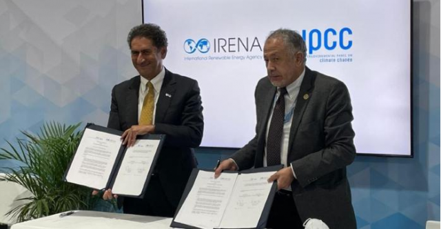Francesco La Camera, Director General of the International Renewable Energy Agency, and Abdalah Mokssit, Secretary of the United Nations Intergovernmental Panel on Climate Change signed the memorandum of understanding at the 27th United Nations Climate Change Conference in Sharm el Sheikh.