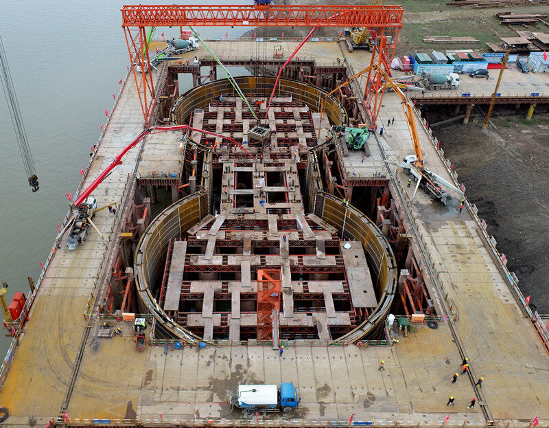 2022年11月23日,由湖北交投投资、中铁大桥局承建的燕矶长江大桥北岸主塔墩哑铃形双壁钢围堰成功封底,这标志燕矶桥即将步入主塔施工阶段。