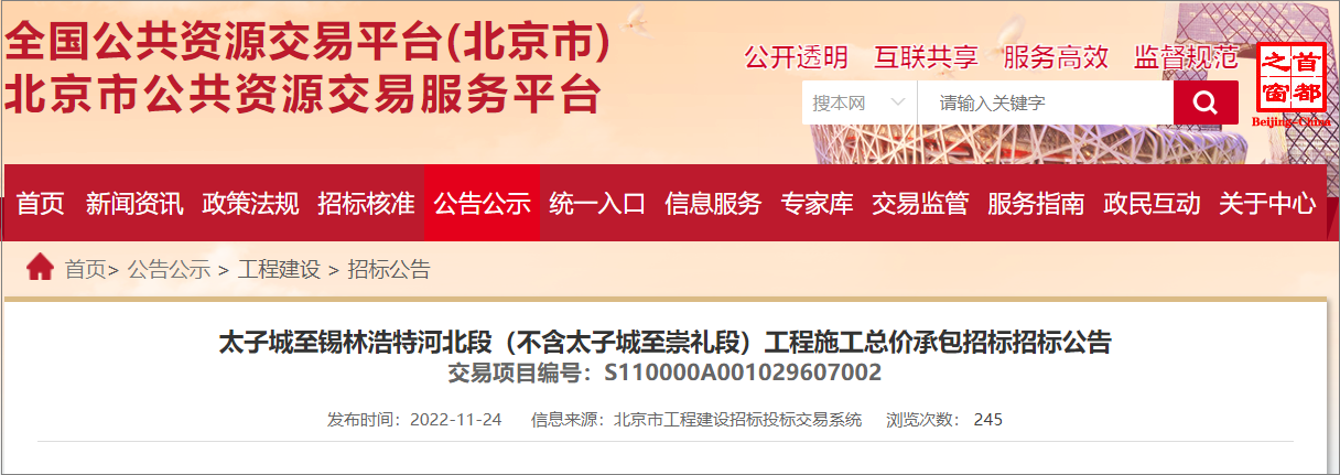 2022年11月24日,太子城至锡林浩特铁路河北段工程施工总价承包招标公告及施工监理公告发布。太锡铁路河北段将于12月底正式开工,计划工期3.5年,项目总投资约125.48亿元。