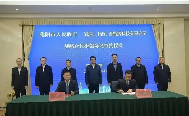 2022年11月24日下午,河南省濮阳市政府与氢通上海新能源科技有限公司战略合作框架协议签约仪式在濮阳迎宾馆举行。根据协议,濮阳市政府支持上海氢通在濮阳建设氢能科技产业基地,并通过以濮阳为基础的应用示范,辐射带动河南、河北、山东等地。