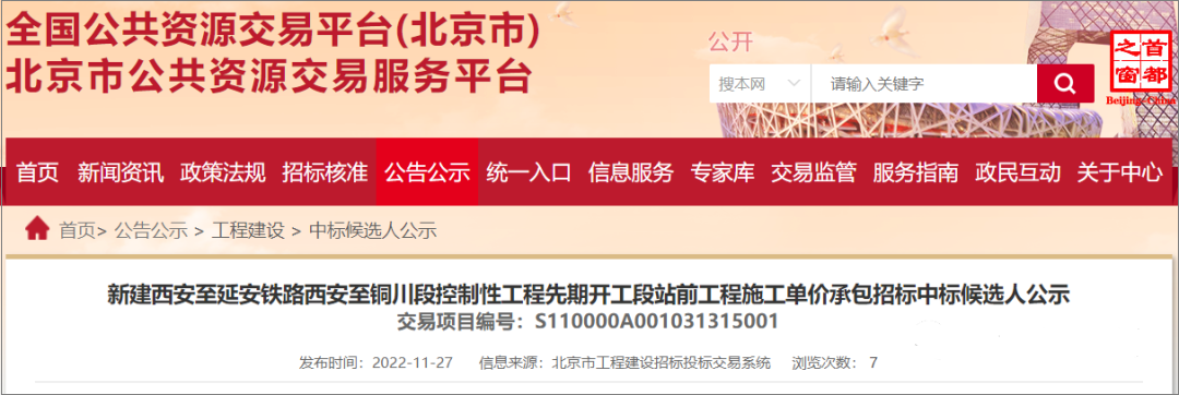 2022年11月27日,新建西安至延安铁路西安至铜川段控制性工程先期开工段站前工程中标候选人公示及新建西安至延安铁路西安至铜川段工程监理中标候选人公示发布,西延高铁西安至铜川段将于12月中旬正式开工建设,工期3年。