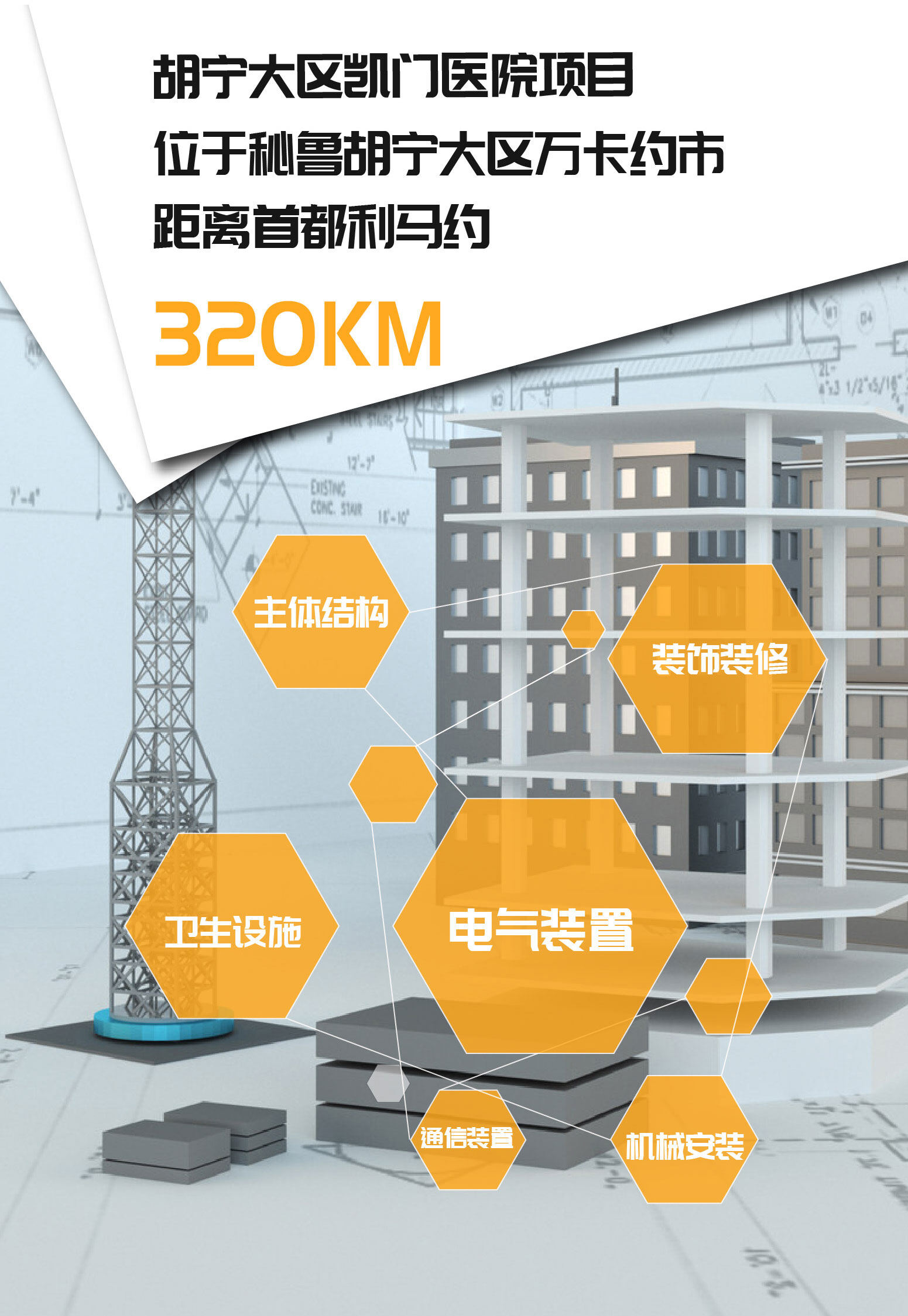 胡宁大区凯门医院项目位于秘鲁胡宁大区万卡约市,距离首都利马约320KM。项目工期为420天,内容主要包括建造凯门医院的部分主体结构、装饰装修、卫生设施、电气装置、机械安装、通信装置等,项目建成后将成为该地区妇幼儿童专科医院。(转载请注明见道网www.seetao.com)见道网工程栏目编辑/邢文涛